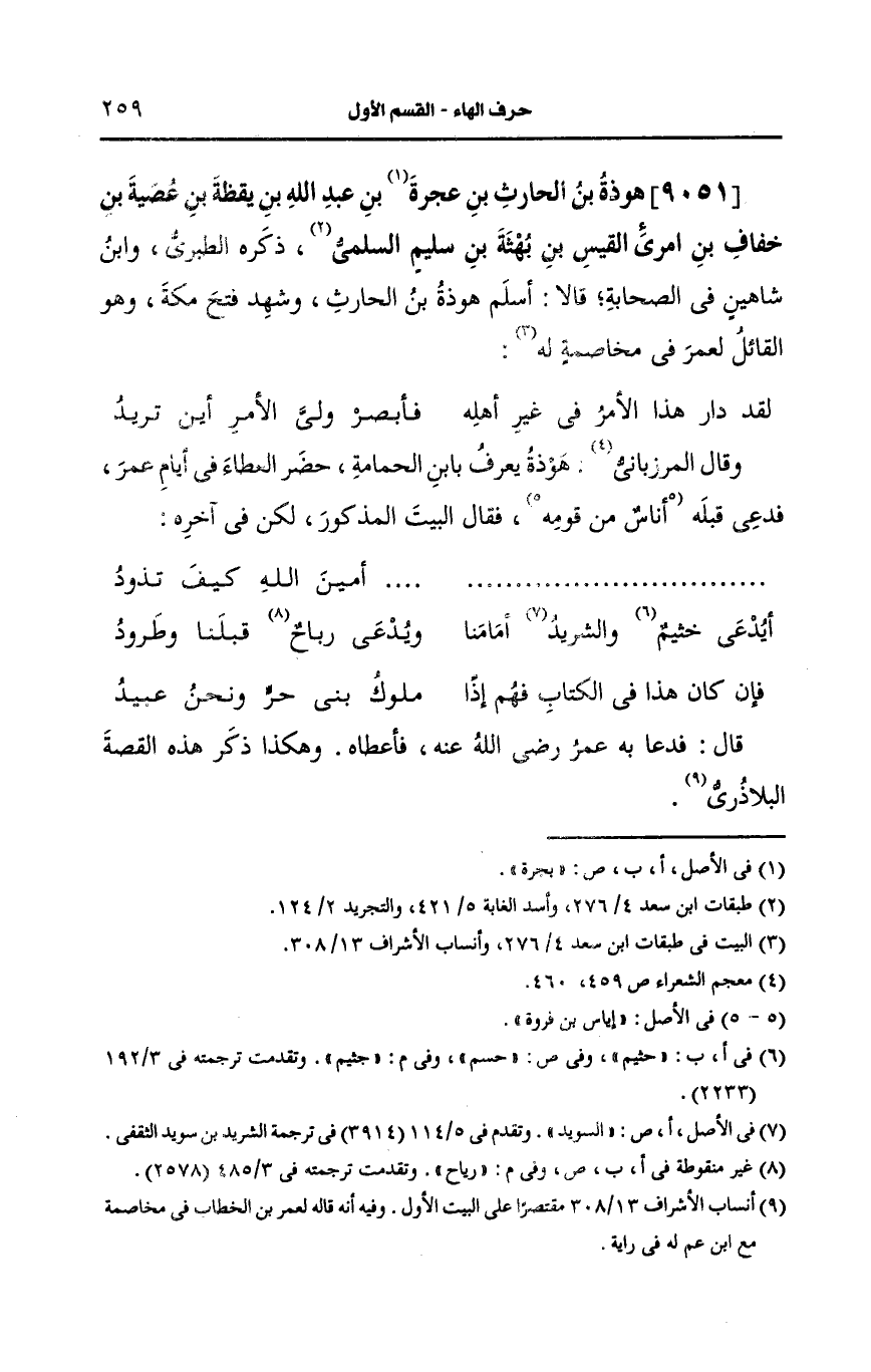 9051- هوذة بن الحارث بن عجرة بن عَبد الله بن يقظة بن عصية بن خفاف بن امرئ القيس بن بهثة بن سليم السلمي.