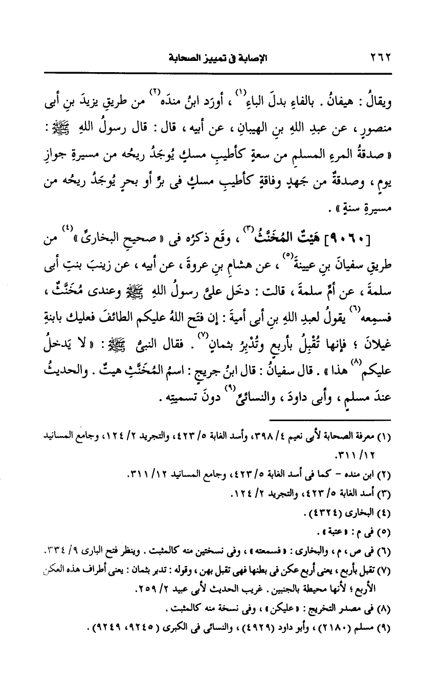 وقع ذكره في صحيح البُخارِيّ من طريق سفيان بن عتبة، عَن هشام بن عُروَة، عَن أَبيه، عَن زينب بنت أبي سلمة، عَن أُم سَلَمة قالت دخل علي رسول الله صَلى الله عَلَيه وسَلم وعندي مخنث فسمعته يقول لعبد الله بن أَبي أُمَيَّة أن فتح الله عليكم الطائف فعليك بابنة غيلان فانها تقبل بأربع وتدبر بثمان فقال النَّبيّ صَلى الله عَلَيه وسَلم لا يدخل عليكم هذا قال سفيان قال ابن جريج اسم المخنث هيت والحديث عند مسلم وأبي داود والنسائي دون تسميته.