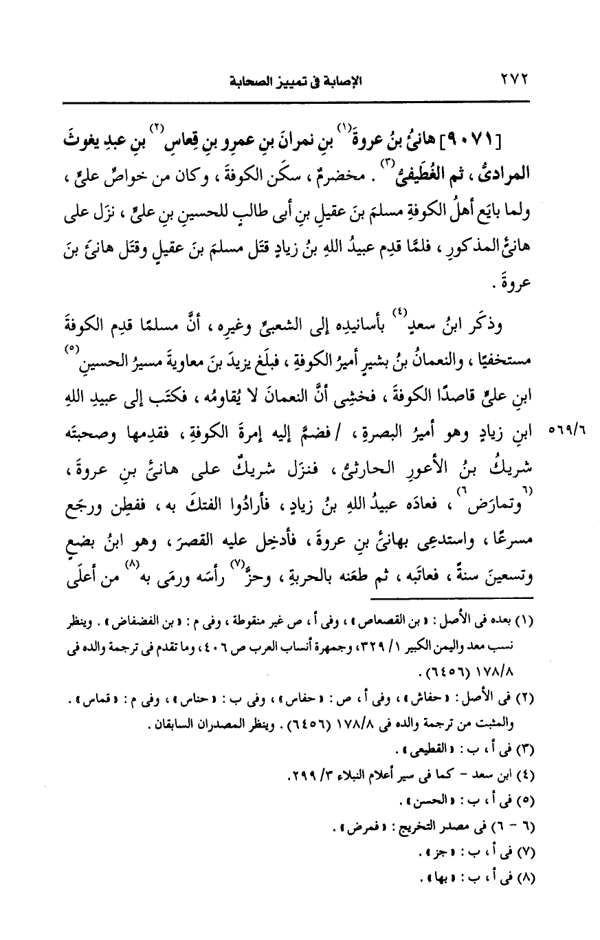 9071- هانئ بن عُروَة بن الفضفاض بن نمران بن عَمرو بن قماس بن عَبد يَغُوث المرادي ثم الغطيفي.