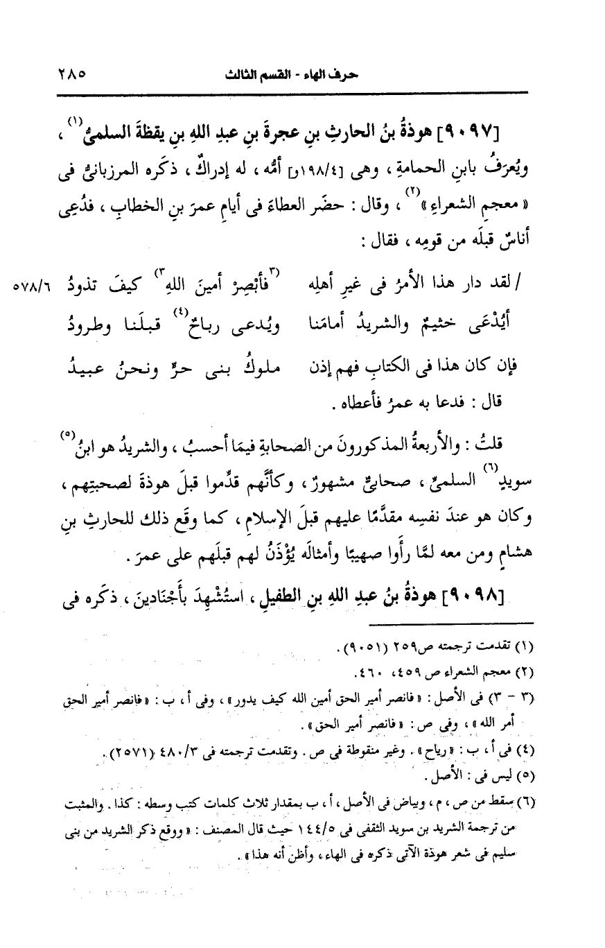 9097- هوذة بن الحارث بن عجرة بن عَبد الله بن يقظة السلمي.