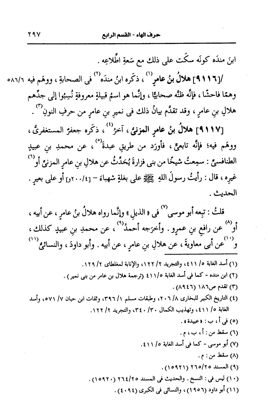 ذَكَرَهُ ابن مَنْدَه في الصحابة ووهم فيه وهما فاحشا فإنه ظنه صحابيا وانما هو اسم قبيلة معروفة نسبوا الى جدهم هلال بن عامر.