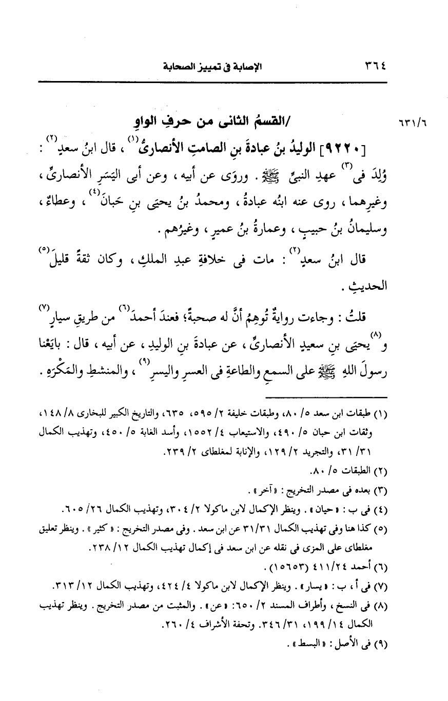 9220- الوليد بن عبادة بن الصامت، الأَنصارِيّ.