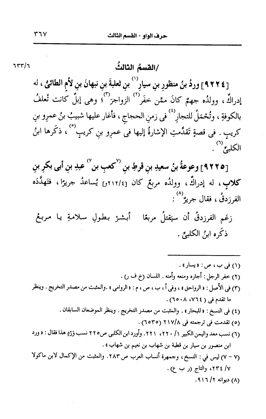 9224- ورد بن منظور بن سيار بن ثعلبة بن نبهان بن لأم الطائي.