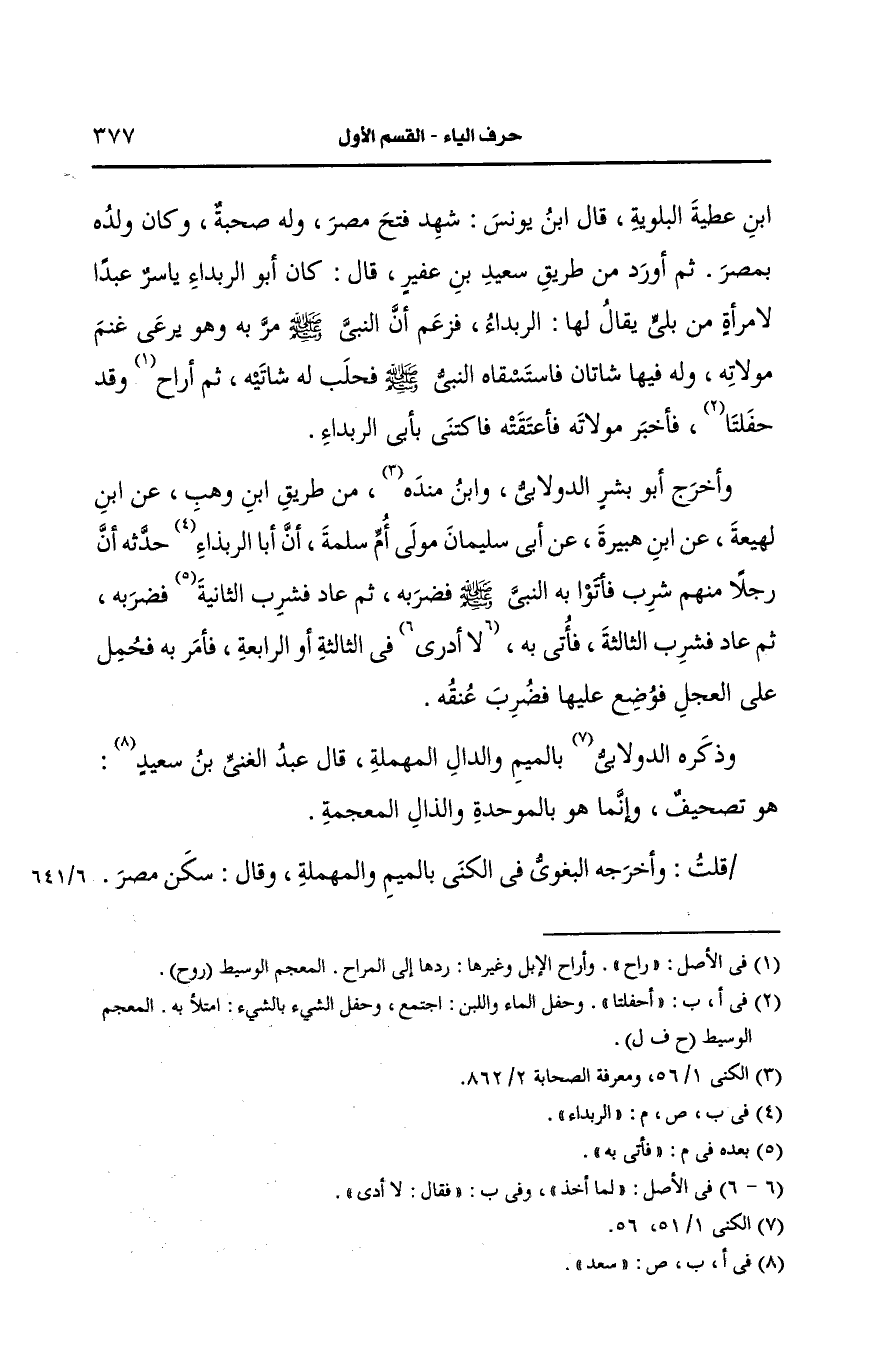 وذكره الدولابي بالميم والدال المهملة قال عبد الغني بن سعيد هو تصحيف وانما هو بالموحدة والذال المعجمة.