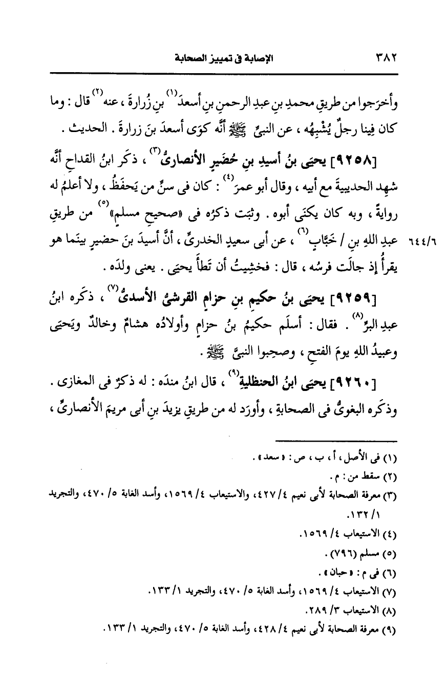 9258- يحيى بن أسيد بن حضير، الأَنصارِيّ.