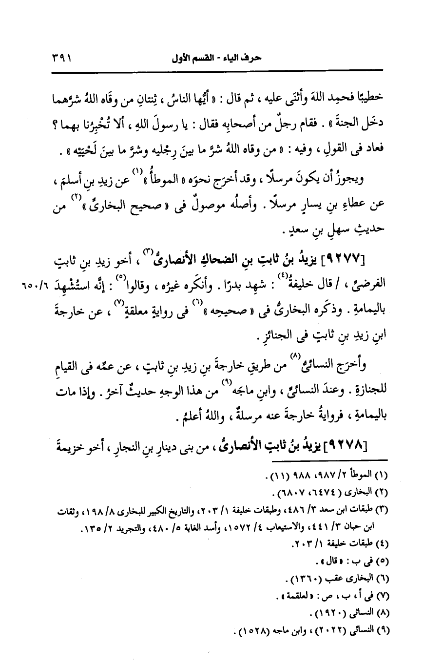 9277- يزيد بن ثابت بن الضحاك، الأَنصارِيّ.