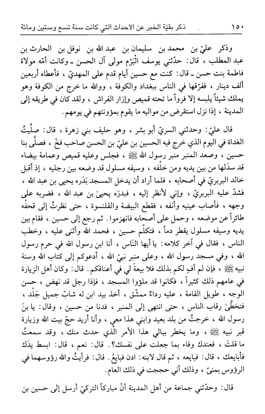 قال: وحدّثني جماعة من أهل المدينة أنّ مباركًا التركيّ أرسل إلى حسين بن
