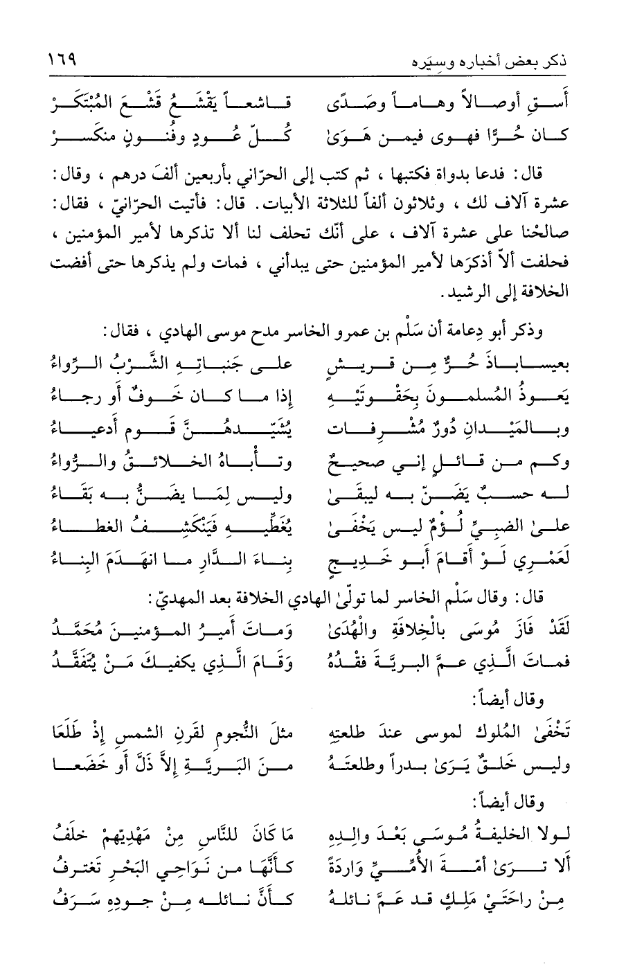 قال: وقال سَلْم الخاسر لما تولّى الهادي الخلافة بعد المهديّ: