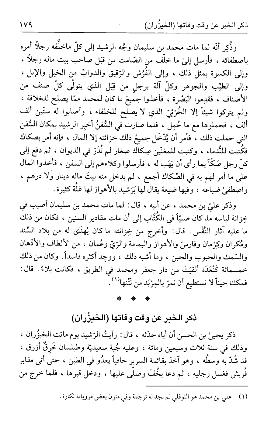 ذكر الخبر عن وقت وفاتها (الخيزُران)