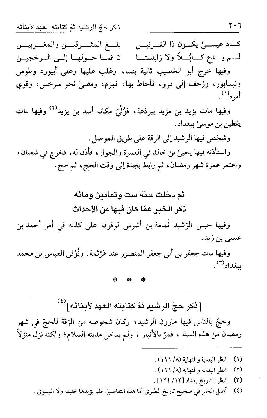 [ذكر حجّ الرشيد ثمّ كتابته العهد لأبنائه] (٤)