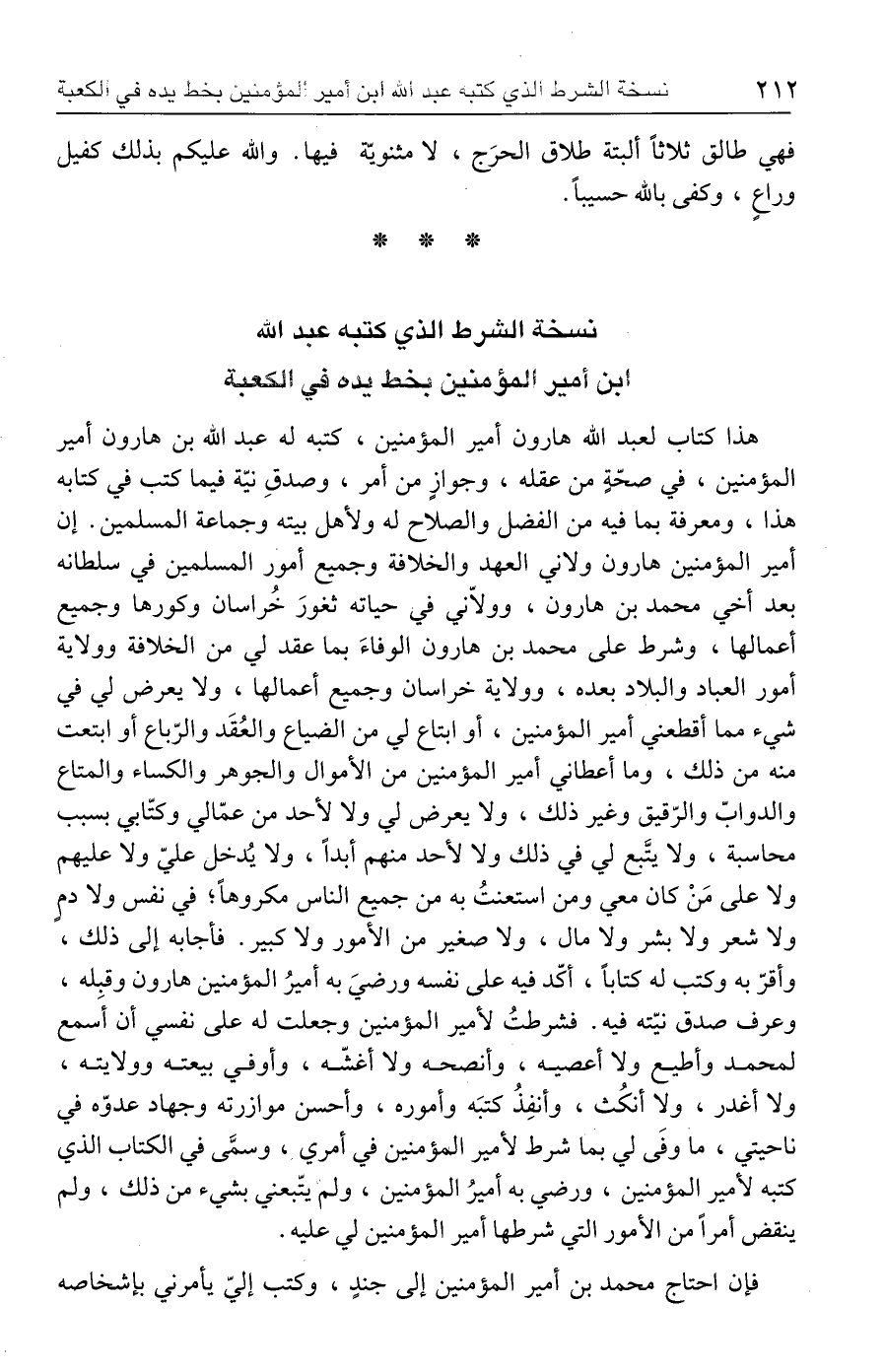 نسخة الشرط الذي كتبه عبد الله أبن أمير المؤمنين بخط يده في الكعبة