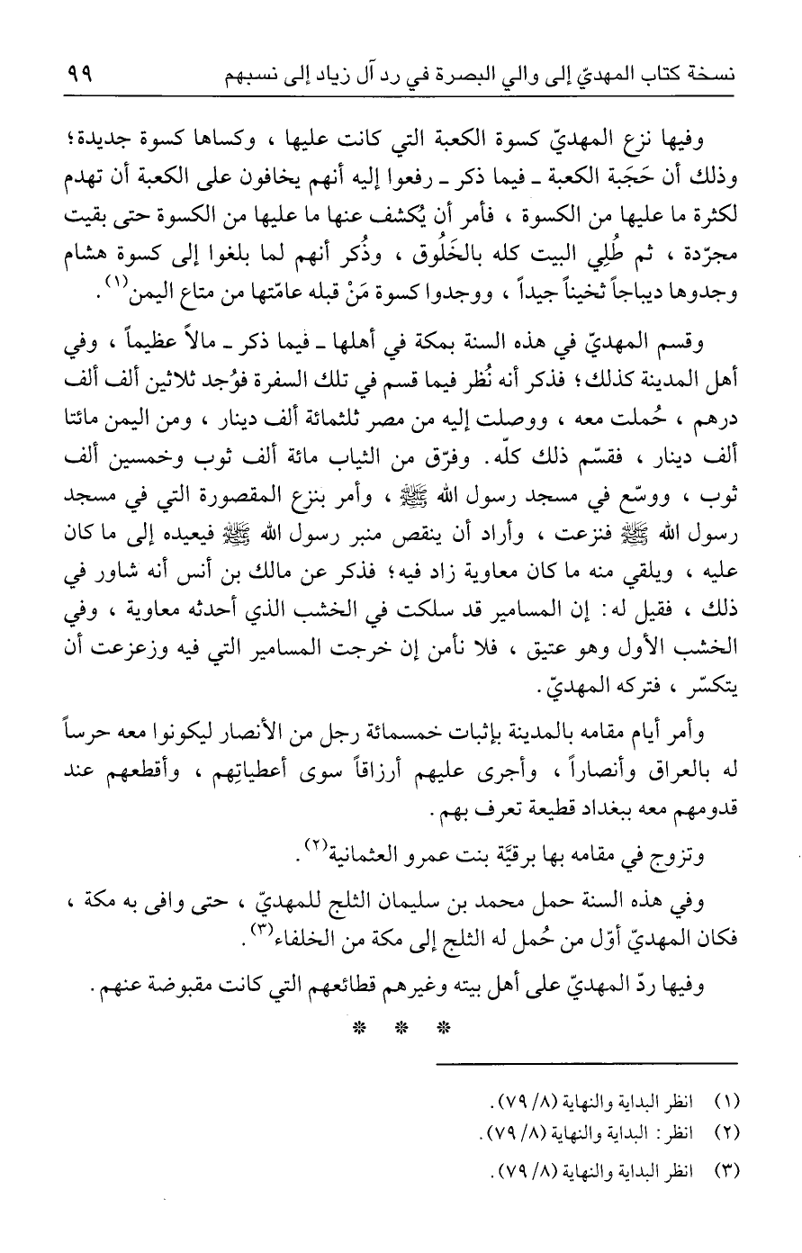 وفيها ردّ المهديّ على أهل بيته وغيرهم قطائعهم التي كانت مقبوضة عنهم.
