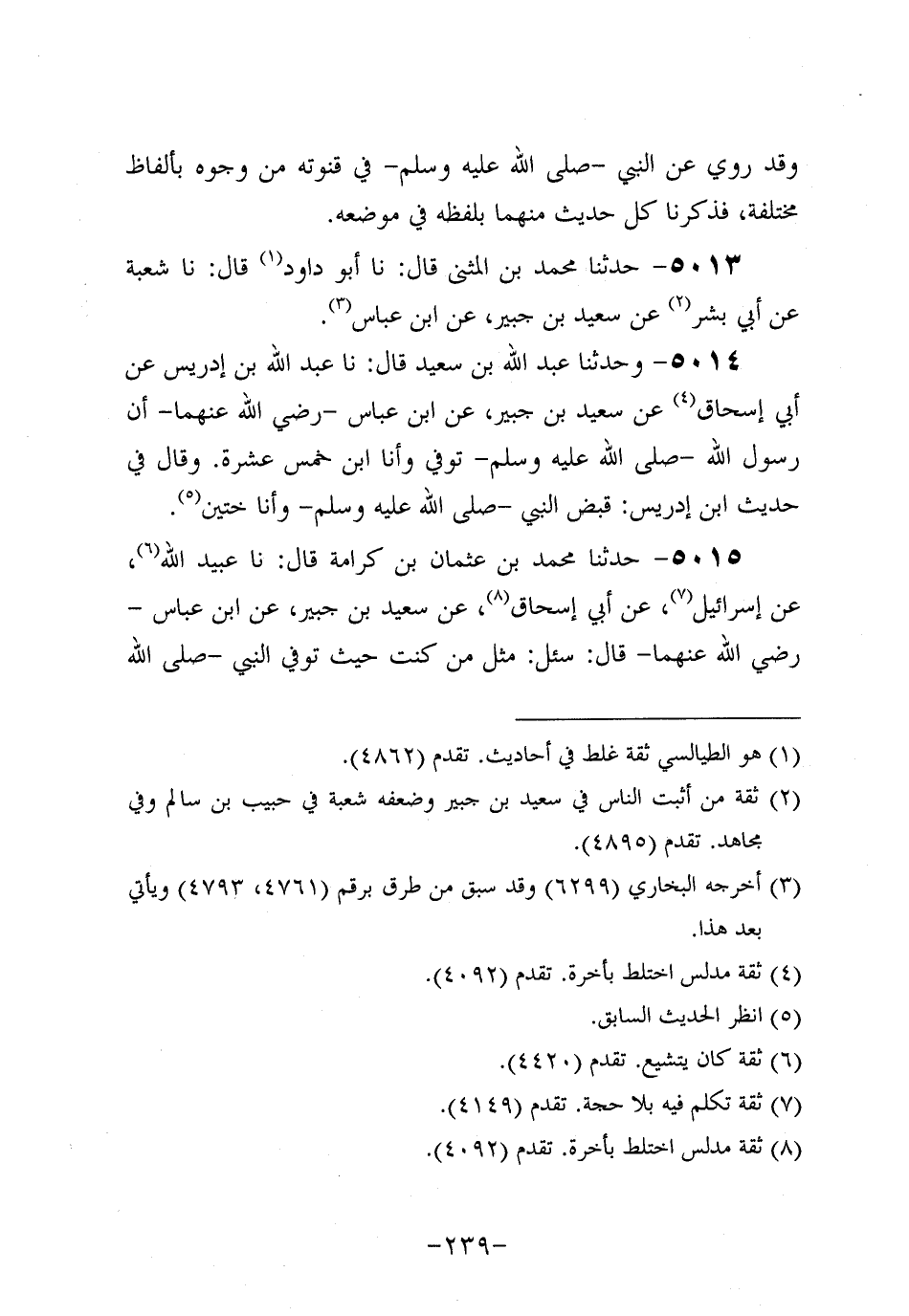 5013- حَدَّثنا مُحَمد بن المثنى، قَال: حَدَّثنا أَبُو داود، قَال: حَدَّثنا شُعْبَةُ، عَن أَبِي بِشْرٍ، عَن سَعِيد بْنِ جُبَير، عَنِ ابْنِ عَبَّاسٍ.