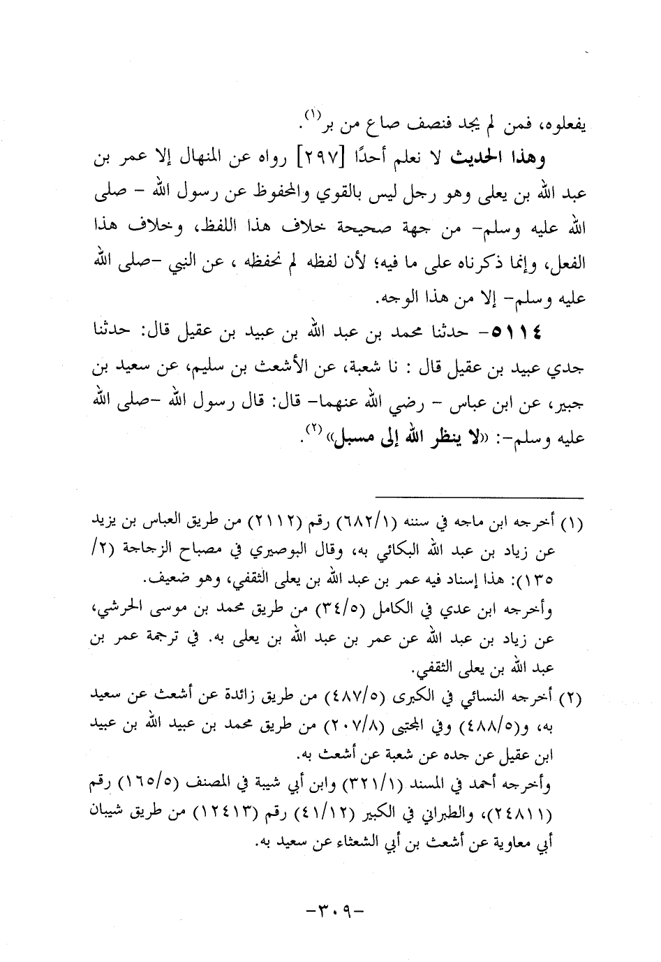 5114- حَدَّثنا مُحَمد بْنُ عَبد اللَّهِ بْنِ عُبَيد بْنِ عَقِيل، قَال: حَدَّثنا جَدِّي عُبَيد بْنُ عَقِيل، قَال: حَدَّثنا شُعْبَةُ، عَن الأَشْعَثِ بْنِ سُلَيْمٍ، عَن سَعِيد بْنِ جُبَير، عَنِ ابْنِ عَبَّاسٍ، رَضِي اللَّهُ عَنْهُمَا، قَالَ: قَالَ رَسُول اللهِ صَلَّى اللَّهُ عَلَيه وَسَلَّم: لا يَنْظُرُ اللَّهُ إِلَى مُسْبِلٍ.