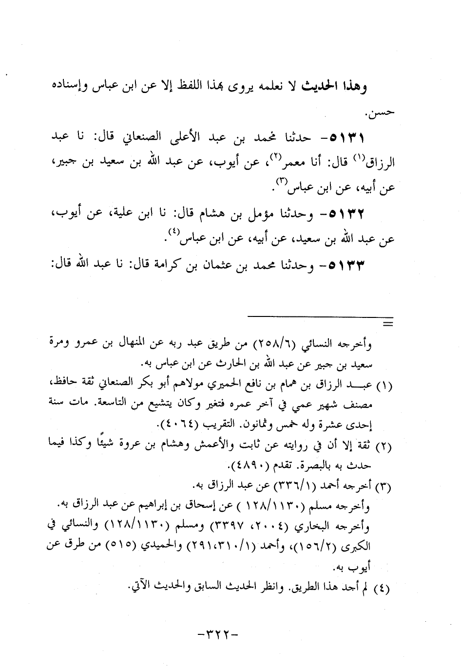 5131- حَدَّثنا مُحَمد بْنُ عَبد الأَعْلَى الصَّنْعَانِيُّ، قَال: حَدَّثنا عَبد الرَّزَّاق، قال: أَخْبَرنا مَعْمر عَنْ أَيُّوبَ عَنْ عَبد اللَّهِ بْنِ سَعِيد بْنِ جُبَير، عَن أَبِيه، عَنِ ابْنِ عَبَّاسٍ.