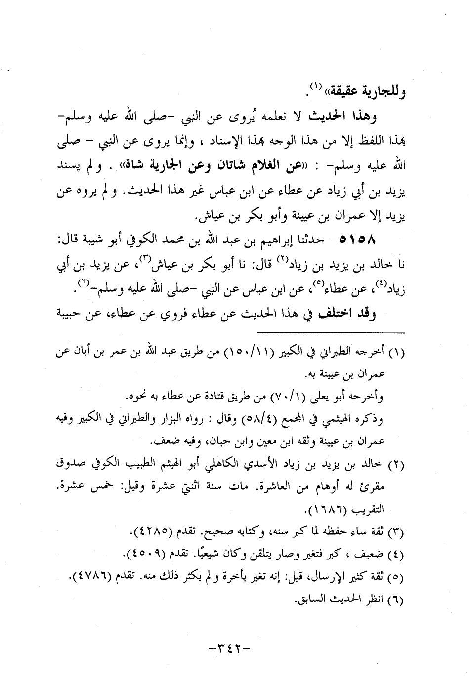 5158- حَدَّثنا إِبْرَاهِيمُ بْنُ عَبد اللَّهِ بْنِ مُحَمد الكوفي أَبُو شيبة، قَال: حَدَّثنا خالد بن يزيد بن زياد، قَال: حَدَّثنا أَبُو بَكْرِ بْنُ عَيَّاشٍ، عَنْ يَزِيدَ بْنِ أَبِي زِيَادٍ، عَن عَطاء، عَنِ ابْنِ عَبَّاسٍ، عَنِ النَّبِيّ صَلَّى اللَّهُ عَلَيه وَسَلَّم (1) .