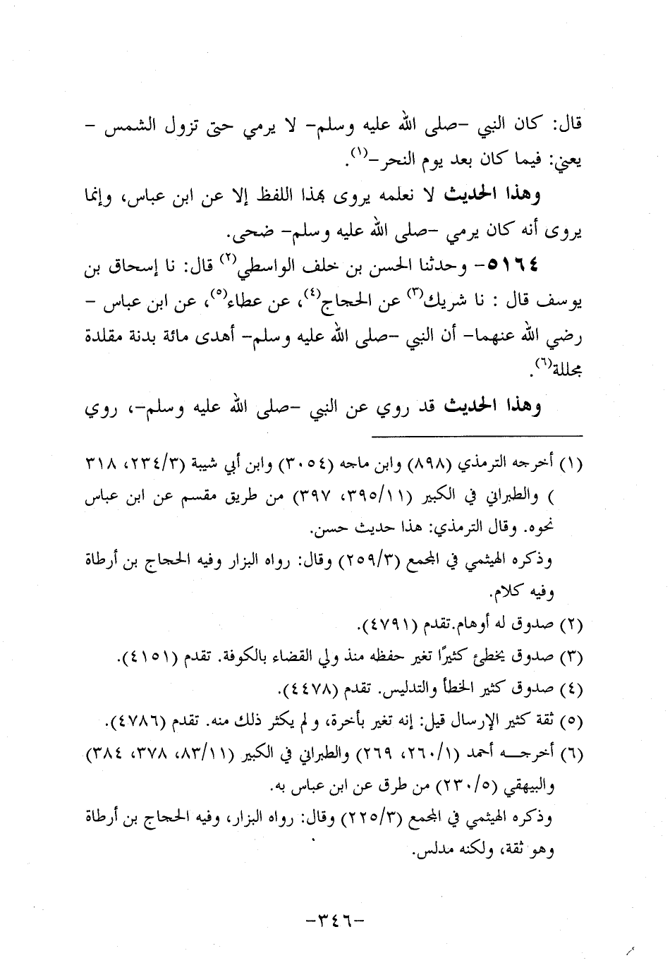 5164- وحَدَّثنا الحسن بن خلف الواسطي، قَال: حَدَّثنا إسحاق بن يوسف، قَال: حَدَّثنا شَرِيكٌ، عَن الحَجَّاج، عَن عَطاء، عَنِ ابْنِ عَبَّاسٍ، رَضِي اللَّهُ عَنْهُمَا، أَنَّ النَّبيَّ صَلَّى الله عَلَيه وَسَلَّم أهدى مِئَة بَدَنَةٍ مُقَلَّدَةٍ مُجَلَّلَةٍ.