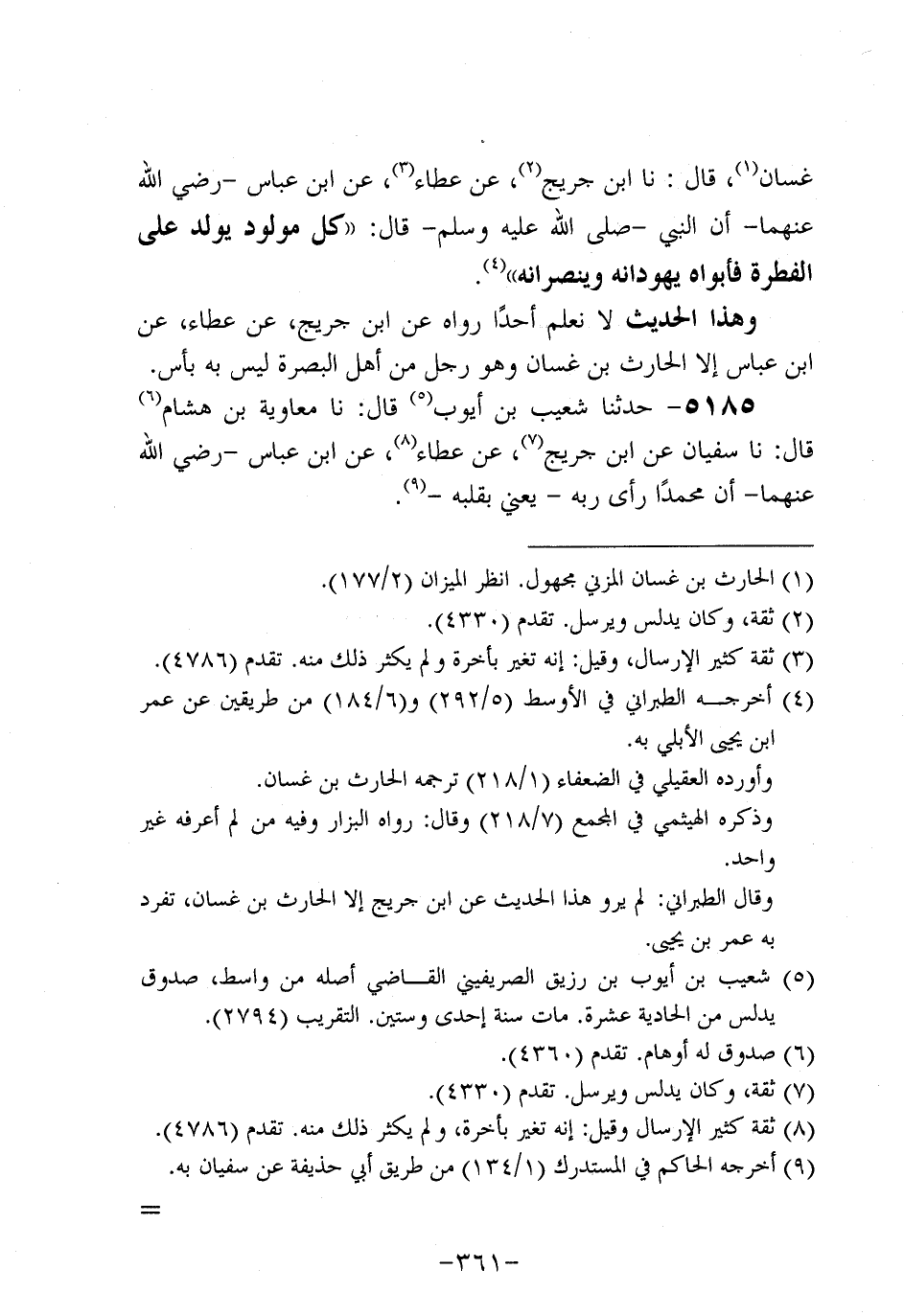 5185- حَدَّثنا شعيب بن أيوب، قَال: حَدَّثنا معاوية بن هشام، قَال: حَدَّثنا سُفيان، عَن ابْنِ جُرَيج، عَن عَطَاءٍ، عَنِ ابْنِ عَبَّاسٍ، رَضِي اللَّهُ عَنْهُمَا، أَنَّ مُحَمَّدًا صَلَّى الله عَلَيه وَسَلَّم رَأَى رَبَّهُ، يَعْنِي بِقَلْبِهِ -.