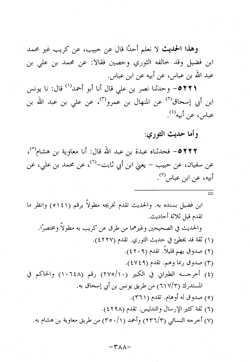 5222- فحَدَّثناه عَبدة بن عَبد الله، قال: أَخْبَرَنَا مُعَاوِيَةُ بْنُ هِشَامٍ عَنْ سُفيان، عَن حَبِيبٍ، يَعْنِي ابْنَ أَبِي ثَابِتٍ عَنْ مُحَمد بْنِ عَلِيٍّ، عَن أَبيهِ، عَن ابنِ عَبَّاسٍ.
