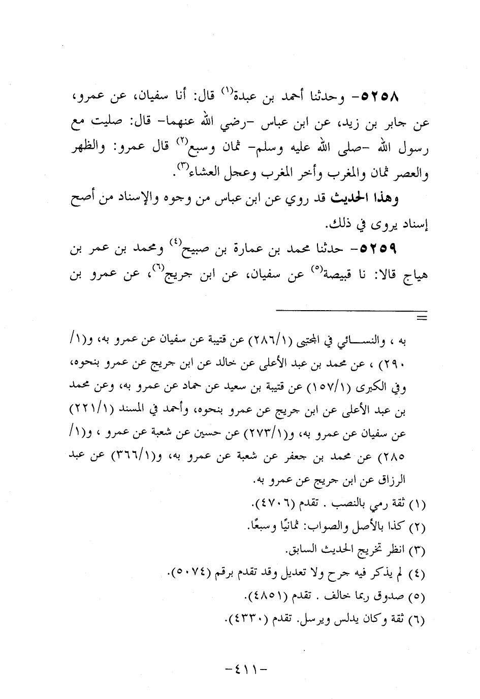 5258- وحَدَّثنا أحمد بن عَبدة، قال: أَخْبَرَنَا سُفيان، عَن عَمْرو، عَنْ جَابِرِ بْنِ زَيْدٍ، عَنِ ابْنِ عَبَّاسٍ، رَضِي اللَّهُ عَنْهُمَا، قَالَ: صَلَّيْتُ مَعَ رَسُولِ اللَّهِ صَلَّى اللَّهُ عَلَيه وَسَلَّم ثَمَانٍ، وسبع.