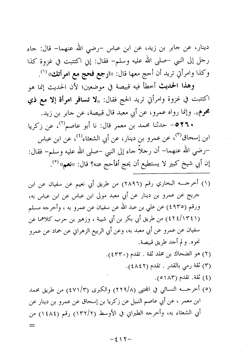 5260- حَدَّثنا مُحَمد بن مَعْمَر، قَال: حَدَّثنا أَبُو عَاصِم، عَنْ زَكَرِيَّا بْنِ إِسْحَاقَ، عَن عَمْرو بْنِ دِينَارٍ، عَن أَبِي الشَّعْثَاءِ، عَنِ ابْنِ عَبَّاسٍ، رَضِي اللَّهُ عَنْهُمَا، أَنَّ رَجُلا جَاءَ إِلَى النَّبِيّ صَلَّى اللَّهُ عَلَيه وَسَلَّم فَقَالَ: إِنَّ أَبِي شَيْخٌ كَبِيرٌ لا يَسْتَطِيعُ أَنْ يَحُجَّ، أَفَأَحُجُّ عَنْهُ؟ قَالَ: نَعَمْ.