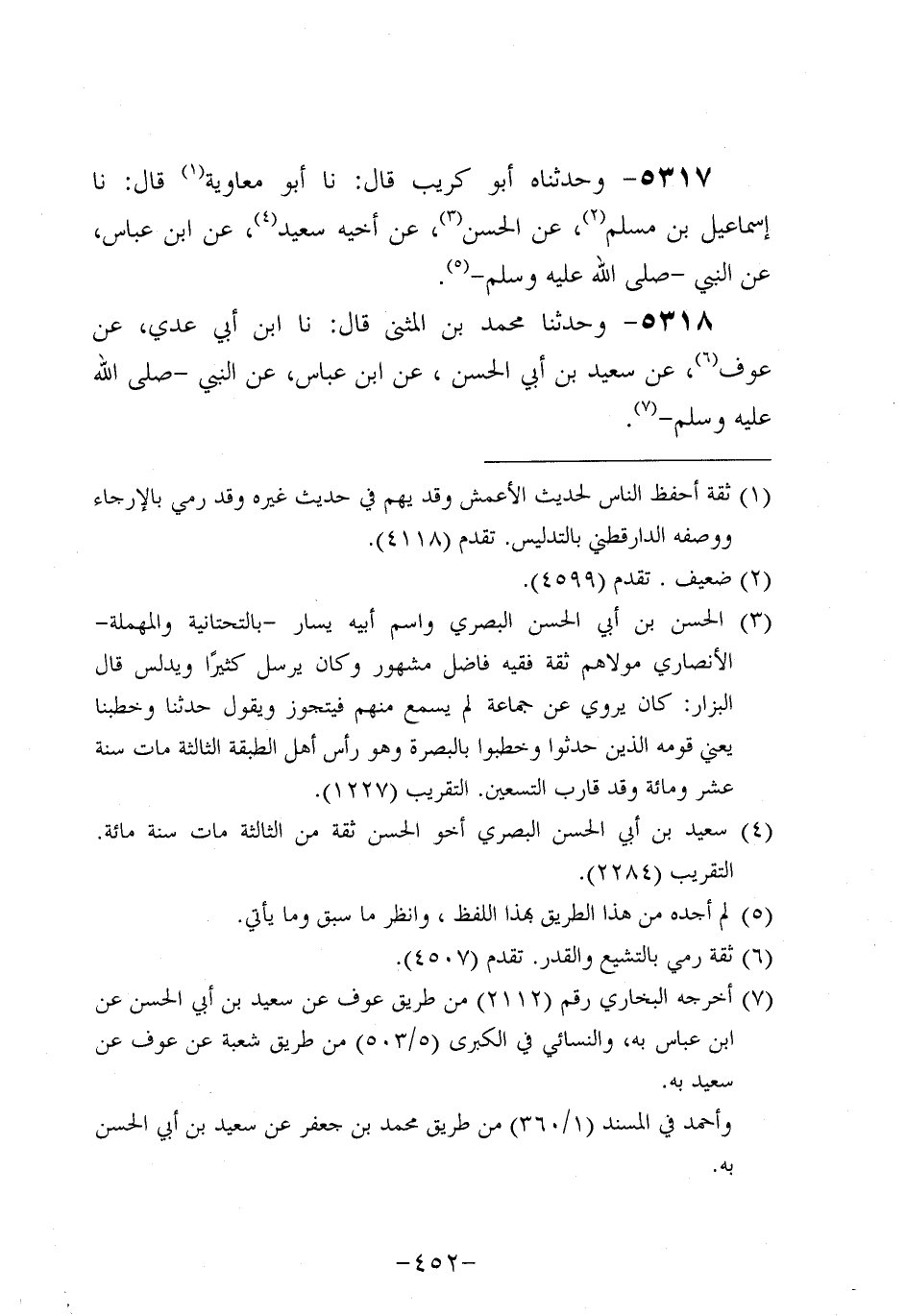 5318- وحَدَّثنا مُحَمَّدُ بْنَ الْمُثَنَّى، قَال: حَدَّثنا ابْنُ أَبِي عَدِيّ عَنْ عَوْفٍ، عَن سَعِيد بْنِ أَبِي الْحَسَنِ، عَن ابنِ عَباس، عَن النَّبِيّ صَلَّى اللَّهُ عَلَيه وَسَلَّم.