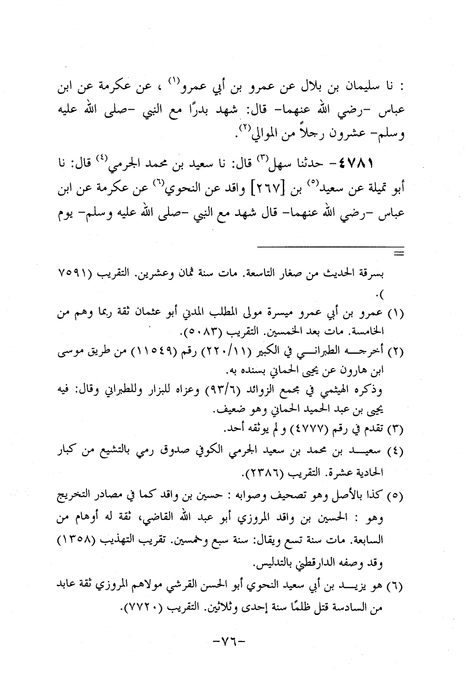 4781- حَدَّثنا سَهْل، قَال: حَدَّثنا سَعِيد بن مُحَمد الجرمي، قَال: حَدَّثنا أَبُو تُمَيْلَةَ، عَن سَعِيد بْنِ وَاقِدٍ عَنِ النَّحْوِيِّ، عَن عِكْرِمة، عَنِ ابْنِ عَبَّاسٍ، رَضِي اللَّهُ عَنْهُمَا، قَالَ شَهِدَ مَعَ النَّبِيّ صَلَّى اللَّهُ عَلَيه وَسَلَّم يَوْمَ فَتْحِ مَكَّةَ أَلْفٌ من بني سليم.