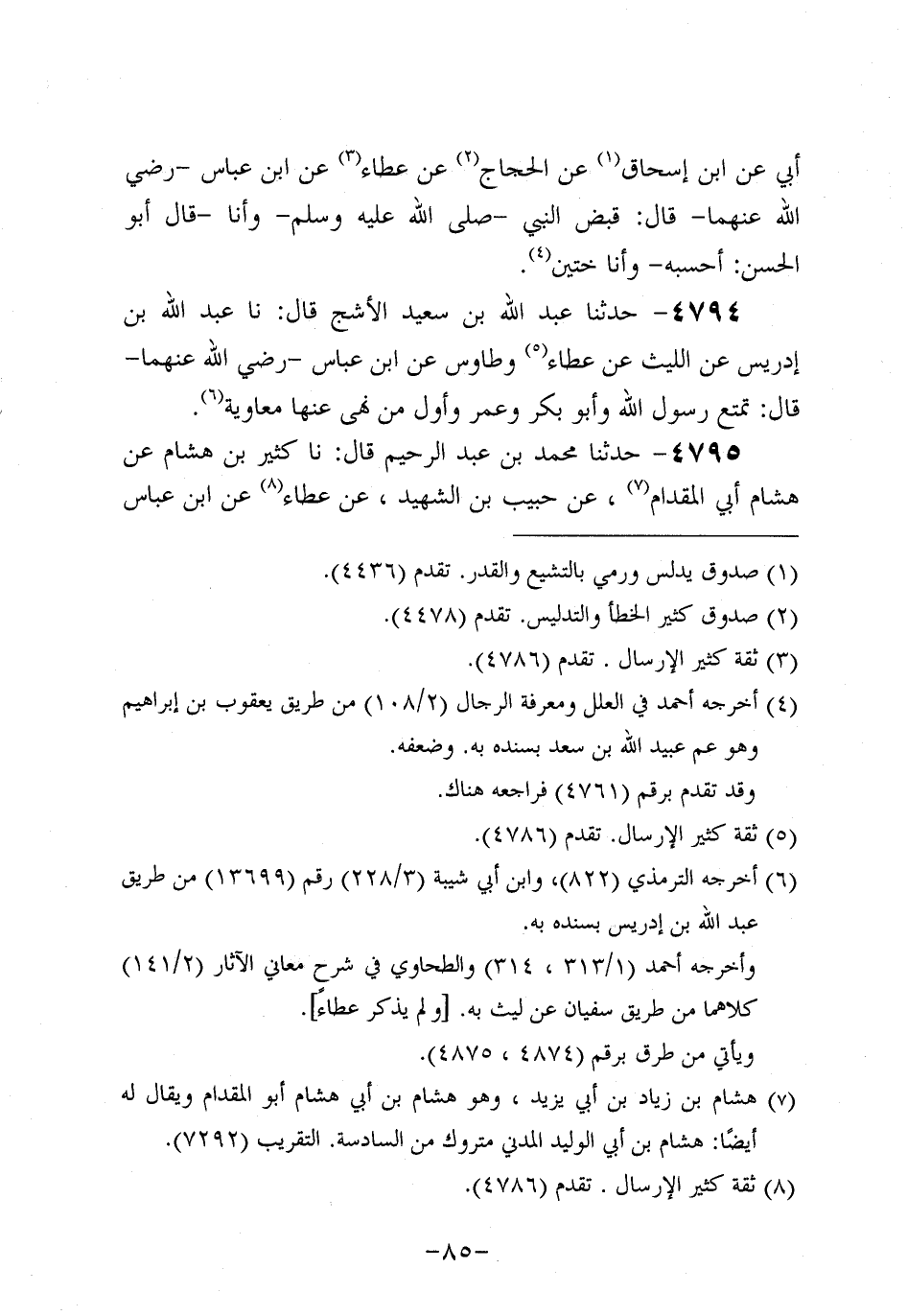 4794- حَدَّثنا عَبْدُ اللَّهِ بْنُ سَعِيدٍ الأَشَجُّ , قَالَ: حَدَّثنا عَبْدُ اللَّهِ بْنُ إِدْرِيسَ , عَنِ اللَّيْثِ , عَنْ عطاء وطاووس , عَنِ ابْنِ عَبَّاسٍ رَضِيَ اللَّهُ عَنْهُمَا قَالَ: تَمَتَّعَ رَسُولُ اللَّهِ وَأَبُو بَكْرٍ وَعُمَرُ وَأَوَّلُ مَنْ نَهَى عَنْهَا مُعَاوِيَةُ.