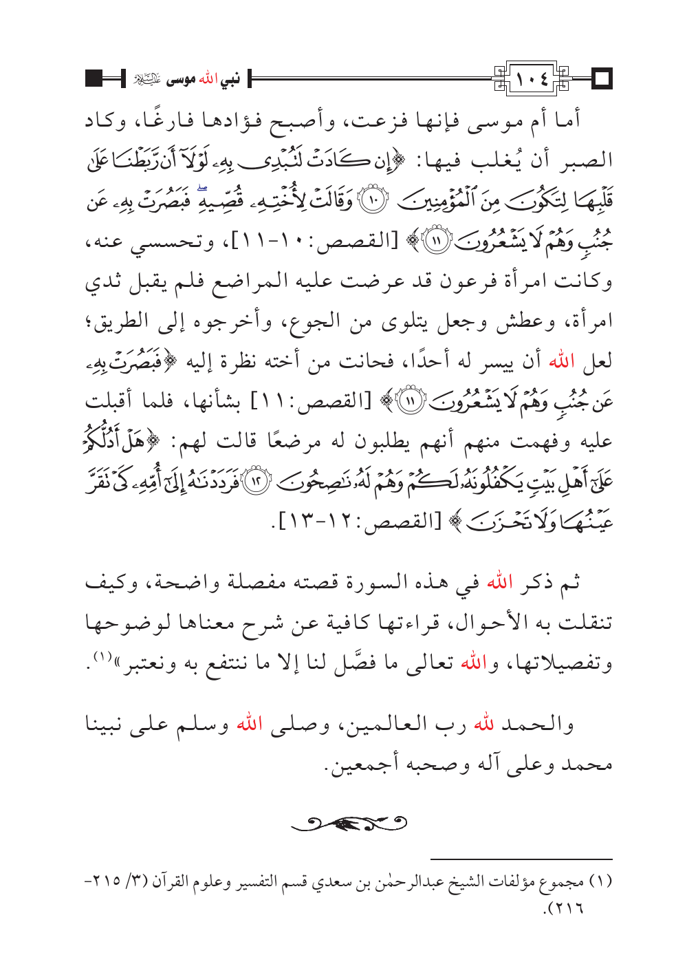 (¬١) مجموع مؤلفات الشيخ عبدالرحمن بن سعدي قسم التفسير وعلوم القرآن (٣/ ٢١٥ - ٢١٦).