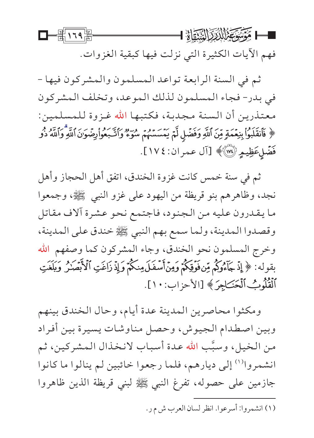 ثم في السنة الرابعة تواعد المسلمون والمشركون فيها - في بدر- فجاء المسلمون لذلك الموعد، وتخلف المشركون معتذرين أن السنة مجدبة، فكتبها الله غزوة للمسلمين: {فَانْقَلَبُوا بِنِعْمَةٍ مِنَ اللَّهِ وَفَضْلٍ لَمْ يَمْسَسْهُمْ سُوءٌ وَاتَّبَعُوا رِضْوَانَ اللَّهِ وَاللَّهُ ذُو فَضْلٍ عَظِيمٍ (١٧٤)} [آل عمران:١٧٤].
