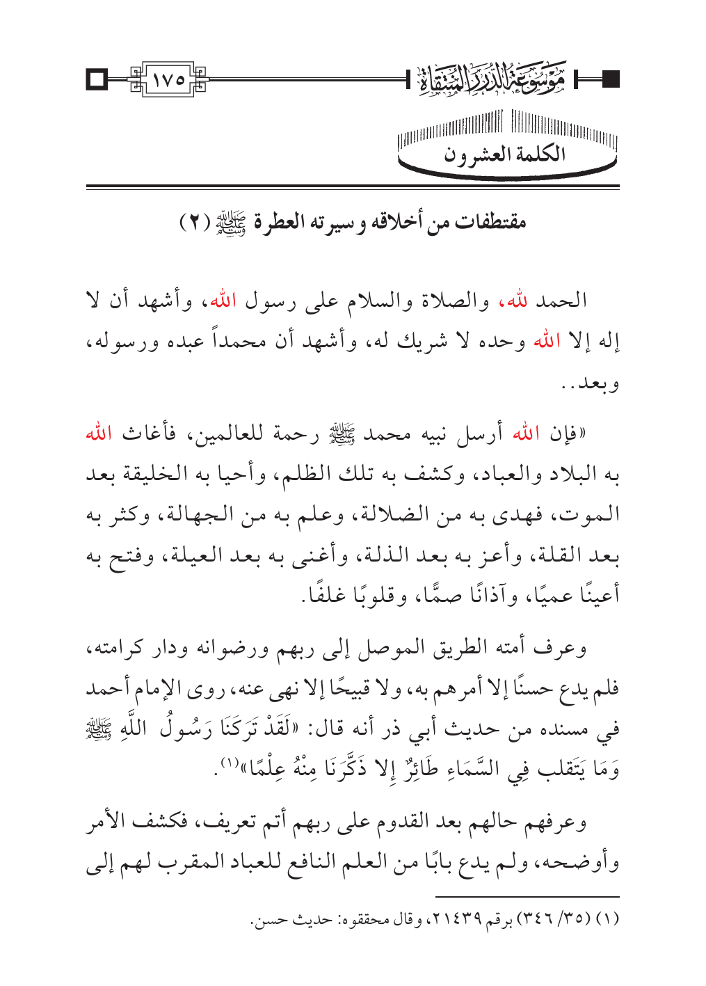 مقتطفات من أخلاقه وسيرته العطرة - صلى الله عليه وسلم - (٢)