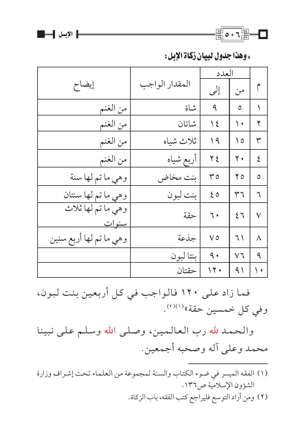 «وهذا جدول لبيان زكاة الإبل: