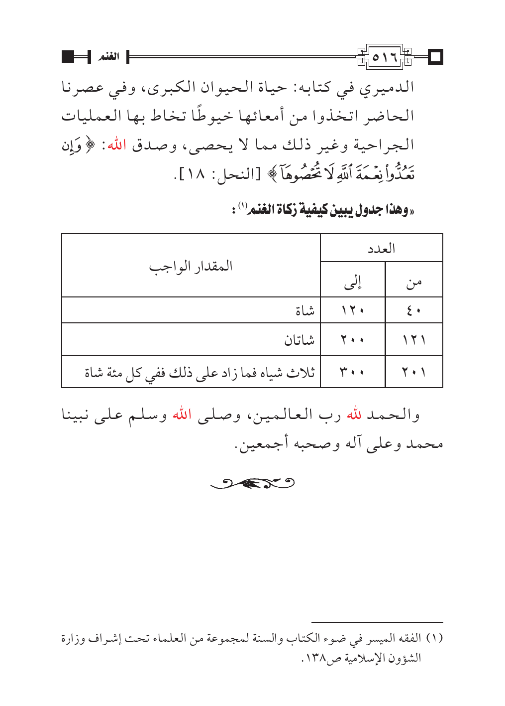 «وهذا جدول يبين كيفية زكاة الغنم (¬١):