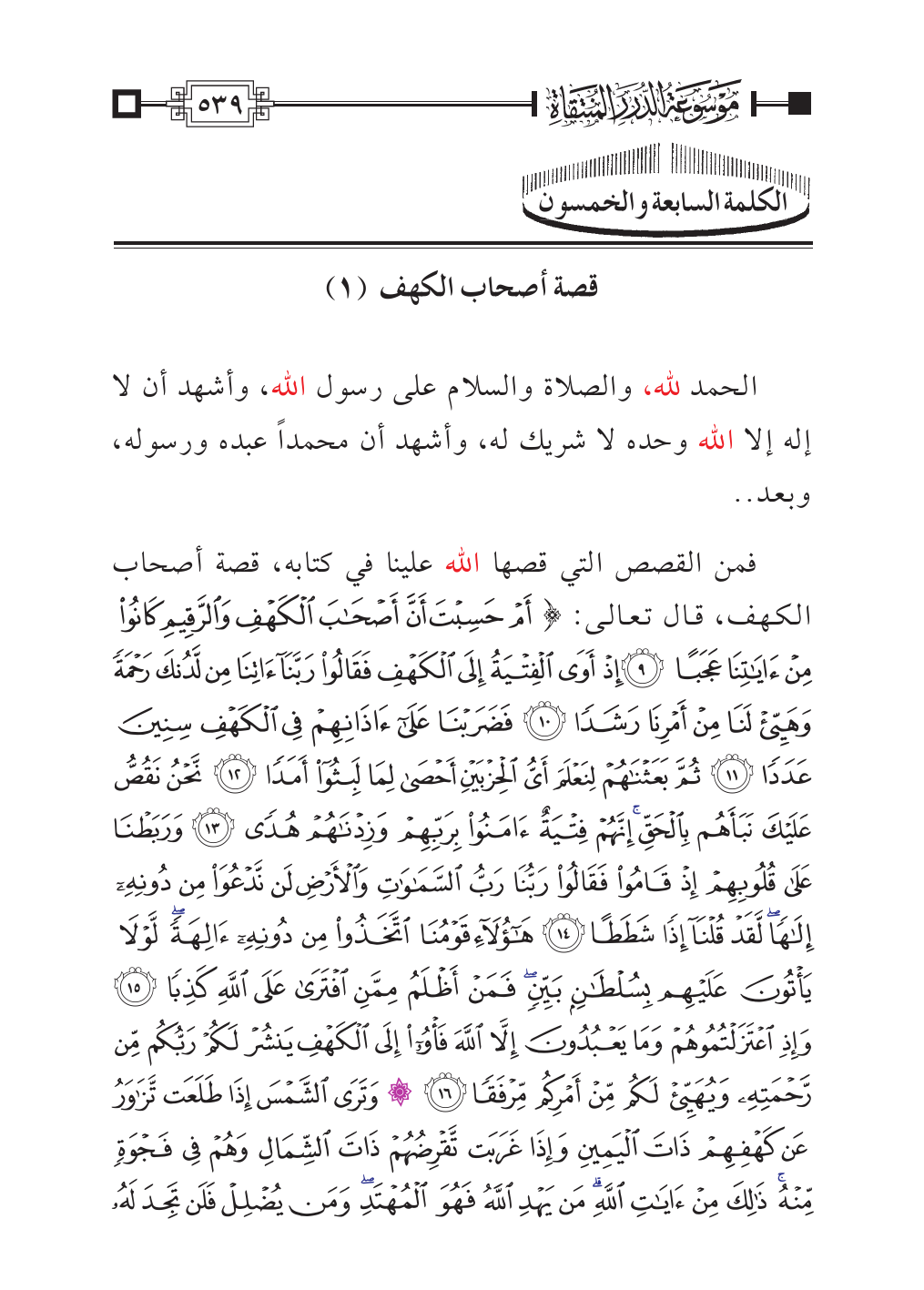 فمن القصص التي قصها الله علينا في كتابه، قصة أصحاب الكهف، قال تعالى: {أَمْ حَسِبْتَ أَنَّ أَصْحَابَ الْكَهْفِ وَالرَّقِيمِ كَانُوا مِنْ آيَاتِنَا عَجَبًا (٩) إِذْ أَوَى الْفِتْيَةُ إِلَى الْكَهْفِ رَبَّنَا مِنْ لَدُنْكَ رَحْمَةً وَهَيِّئْ لَنَا مِنْ أَمْرِنَا رَشَدًا (١٠) فَضَرَبْنَا عَلَى آذَانِهِمْ فِي الْكَهْفِ سِنِينَ عَدَدًا (١١) ثُمَّ بَعَثْنَاهُمْ لِنَعْلَمَ أَيُّ الْحِزْبَيْنِ أَحْصَى لِمَا لَبِثُوا أَمَدًا (١٢) نَحْنُ نَقُصُّ عَلَيْكَ نَبَأَهُمْ بِالْحَقِّ إِنَّهُمْ فِتْيَةٌ آمَنُوا بِرَبِّهِمْ وَزِدْنَاهُمْ هُدًى (١٣) وَرَبَطْنَا عَلَى قُلُوبِهِمْ إِذْ قَامُوا فَقَالُوا رَبُّنَا رَبُّ السَّمَاوَاتِ وَالْأَرْضِ لَنْ نَدْعُوَ مِنْ دُونِهِ إِلَهًا لَقَدْ قُلْنَا إِذًا شَطَطًا (١٤) هَؤُلَاءِ قَوْمُنَا اتَّخَذُوا مِنْ دُونِهِ آلِهَةً لَوْلَا يَأْتُونَ عَلَيْهِمْ بِسُلْطَانٍ بَيِّنٍ فَمَنْ أَظْلَمُ مِمَّنِ افْتَرَى عَلَى اللَّهِ كَذِبًا (١٥) وَإِذِ اعْتَزَلْتُمُوهُمْ وَمَا يَعْبُدُونَ إِلَّا اللَّهَ فَأْوُوا إِلَى الْكَهْفِ يَنْشُرْ لَكُمْ رَبُّكُمْ مِنْ رَحْمَتِهِ وَيُهَيِّئْ لَكُمْ مِنْ أَمْرِكُمْ مِرْفَقًا (١٦) وَتَرَى الشَّمْسَ إِذَا طَلَعَتْ تَزَاوَرُ عَنْ كَهْفِهِمْ ذَاتَ الْيَمِينِ وَإِذَا غَرَبَتْ تَقْرِضُهُمْ ذَاتَ الشِّمَالِ وَهُمْ فِي فَجْوَةٍ مِنْهُ ذَلِكَ مِنْ آيَاتِ اللَّهِ مَنْ يَهْدِ اللَّهُ فَهُوَ الْمُهْتَدِ وَمَنْ يُضْلِلْ فَلَنْ تَجِدَ لَهُ