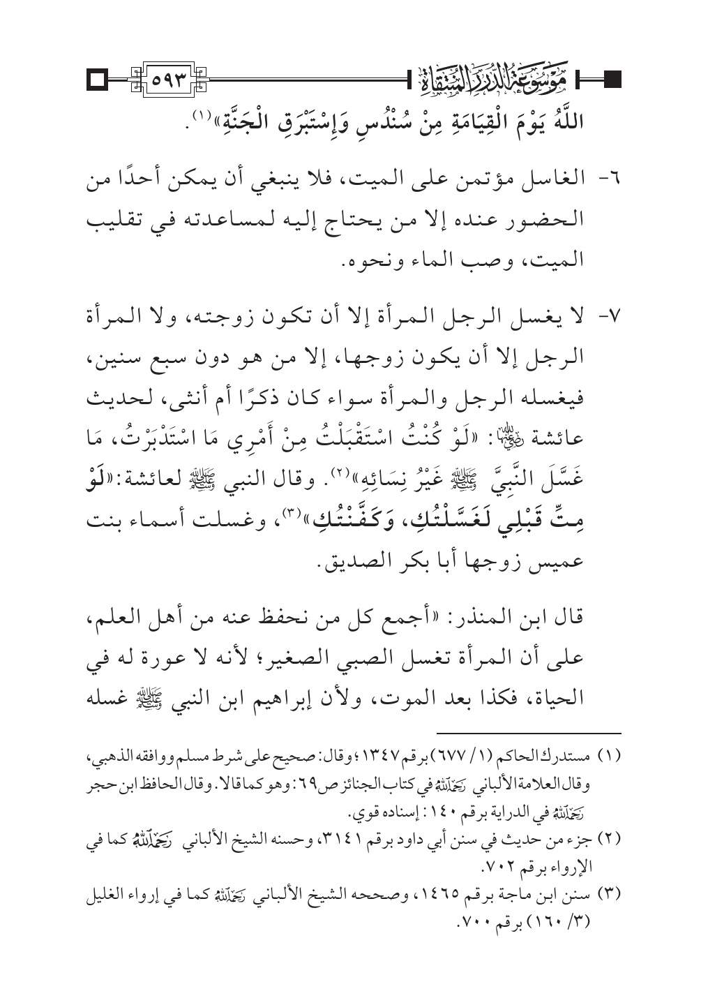(¬٣) سنن ابن ماجة برقم ١٤٦٥، وصححه الشيخ الألباني - رحمه الله - كما في إرواء الغليل (٣/ ١٦٠) برقم ٧٠٠.