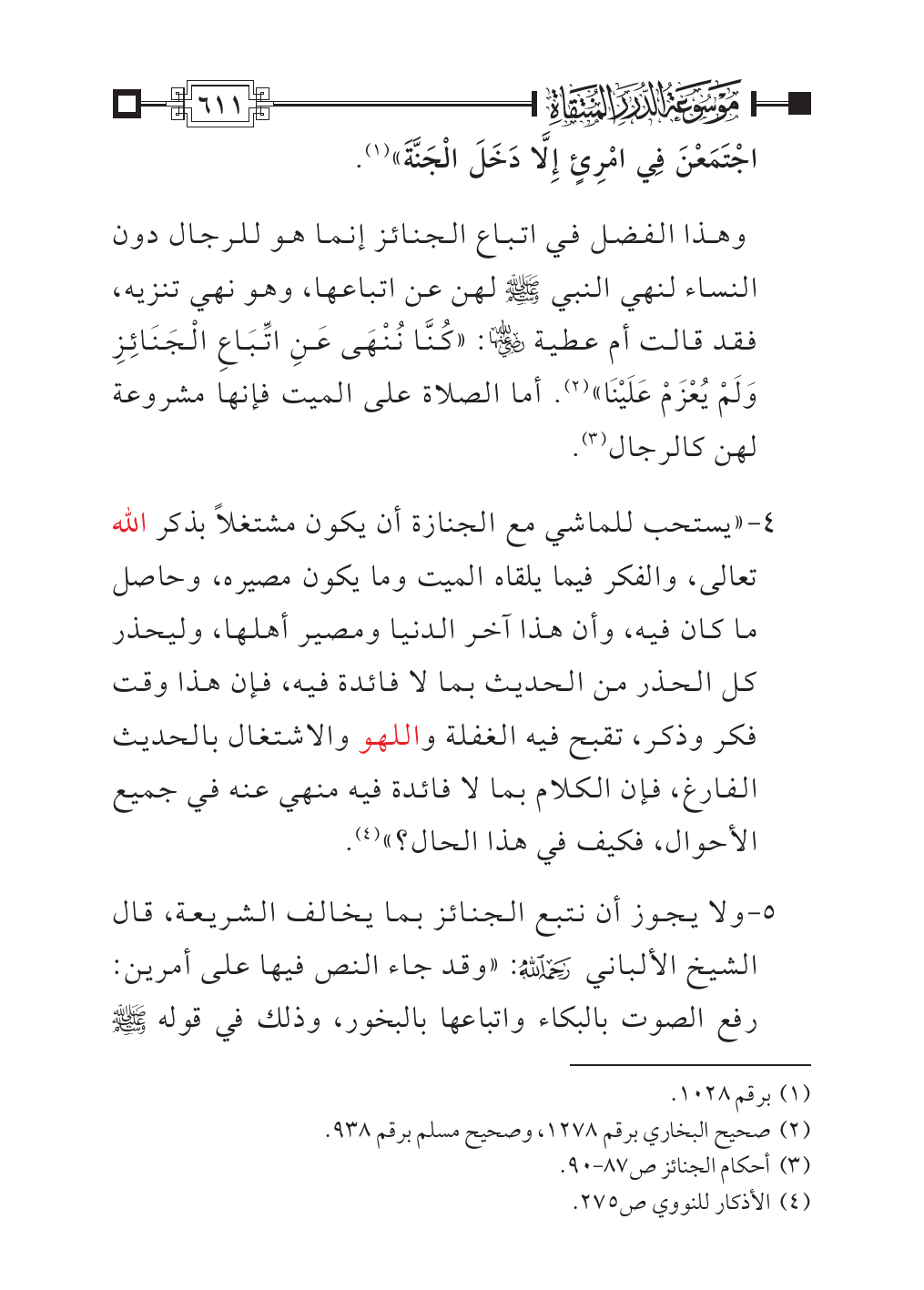 (¬٣) أحكام الجنائز ص ٨٧ - ٩٠.