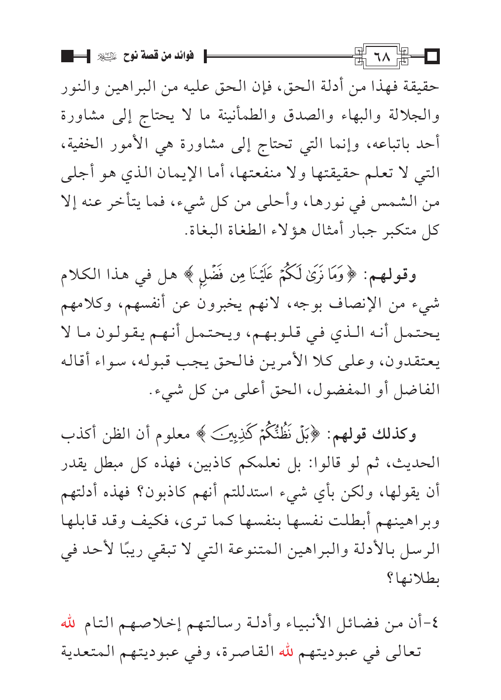 أن من فضائل الأنبياء وأدلة رسالتهم إخلاصهم التام لله تعالى في عبوديتهم لله القاصرة، وفي عبوديتهم المتعدية
