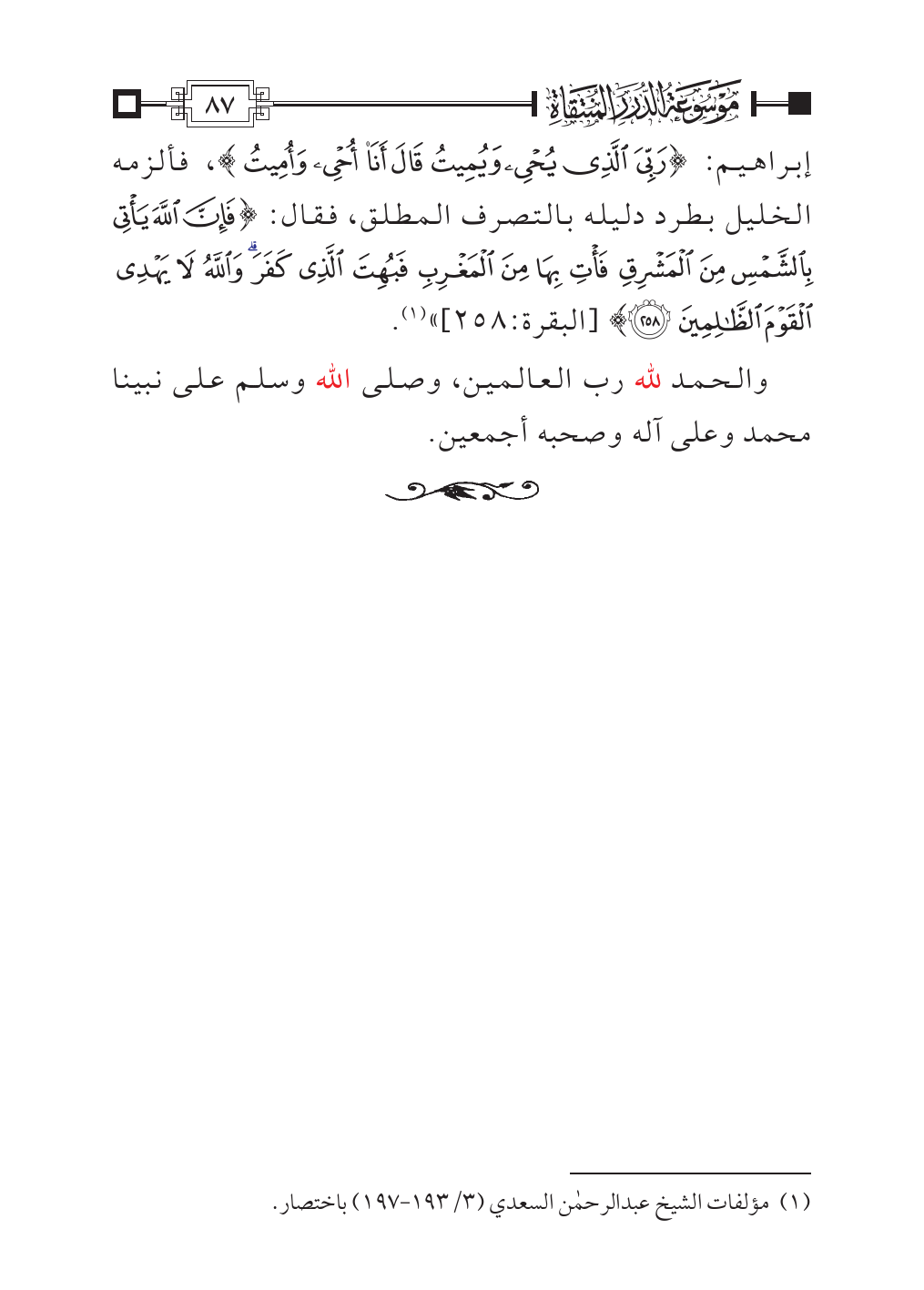 (¬١) مؤلفات الشيخ عبدالرحمن السعدي (٣/ ١٩٣ - ١٩٧) باختصار.