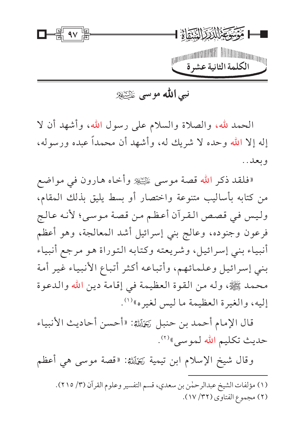 قال الإمام أحمد بن حنبل - رحمه الله -: «أحسن أحاديث الأنبياء حديث تكليم الله لموسى» (¬٢).