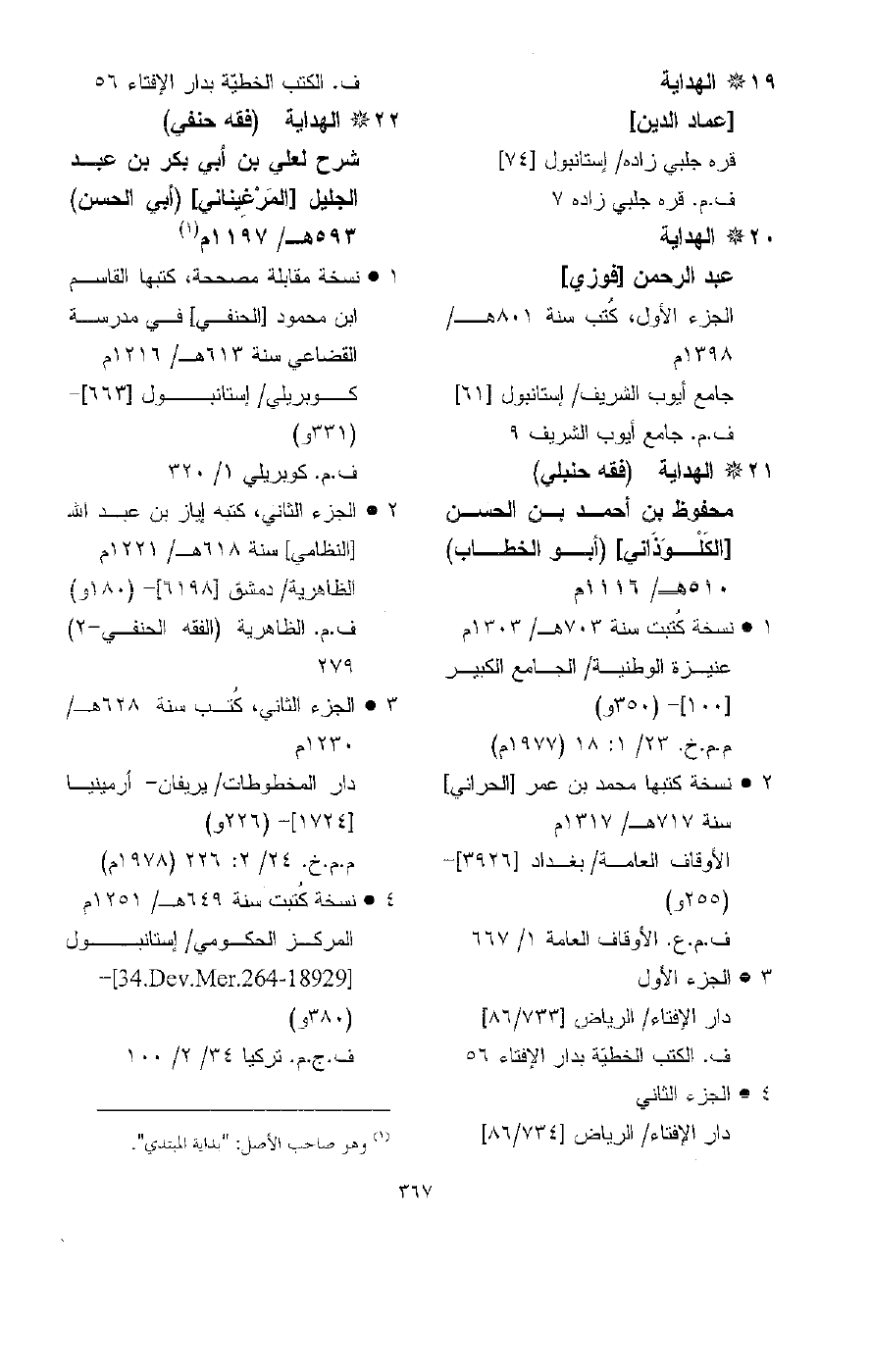 - علي بن أبي بكر بن عبد الجليل، الفرغاني، أبو الحسن، المَرْغيناني (593هـ/ 1197م) (2: 69) 77، (2: 201) 397، (2: 294) 130، (2: 638) 1071، (5: 131) 349، (5: 157) 417، (6: 265) 276، (7: 441) 1096، (7: 713) 1584، (8: 381) 310، (9: 106) 262، (9: 197) 513، (11: 236) 668، (11: 367) 22، (12: 101) 11، (12: 113) 3