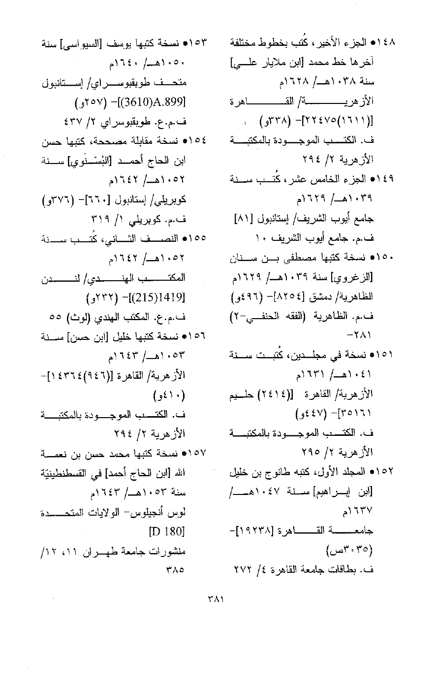 - علي بن محمد بن سليم، أبو الحسن، النوري (1117هـ/ 1705م) (1: 194) 692، (4: 7) 14
