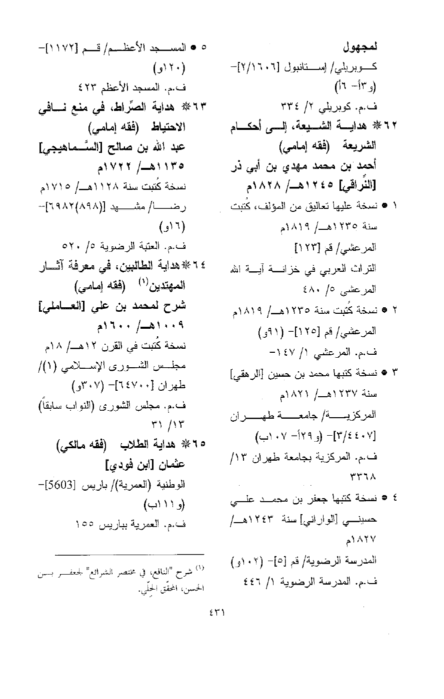 1) الأحمدية (مخطوطات المدرسة الأحمدية)، ج5/ 131- 366.