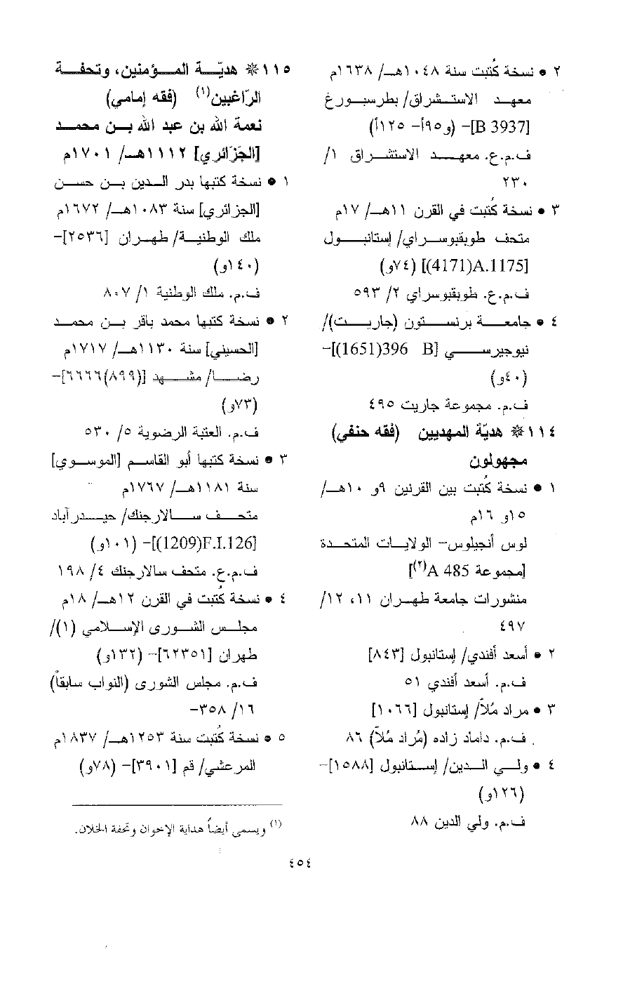 - فهرس مكتبة فيض الله أفندي (الملحقة بالمكتبة الوطنية) وشيخ مراد، وقلقان دلنلي إسماعيل آغا، دار السعادة/ إستانبول (1310هـ/ 1892م).