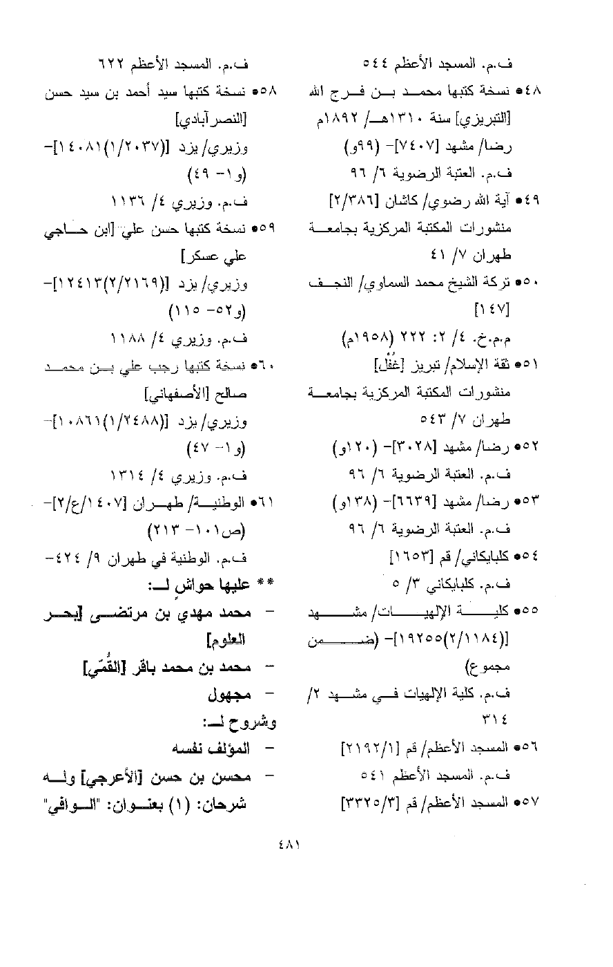 …فهرس وصفي موجز للمخطوطات العربية في متحف ومكتبة سالارجنك، وضعه الحاج محمد أشرف (لجنة متحف ومكتبة سالارجنك، حيدر آباد، أندهرا براديش، دائرة المعارف العثمانية بحيدر آباد، الدكن، الهند، ط1 (1398هـ/ 1978م).