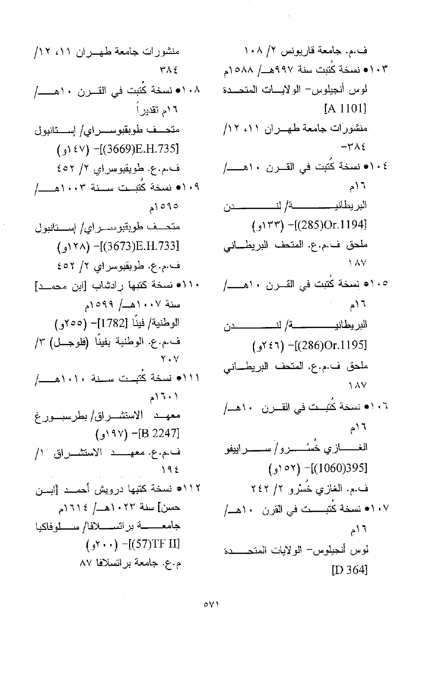 - الأنصاري (1: 613) 1952، (11: 211) 584