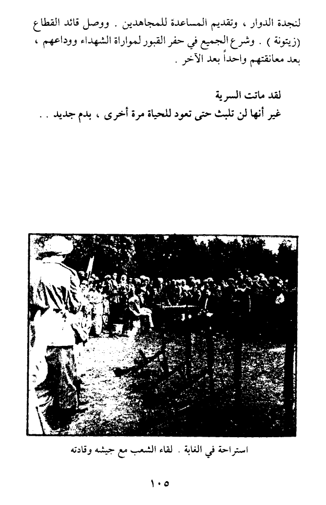 لنجدة الدوار، وتقديم المساعدة للمجاهدين. ووصل قائد القطاع (زيتونة). وشرع الجميع في حفر القبور لمواراة الشهداء ووداعهم، بعد معانقتهم واحدا بعد الآخر.