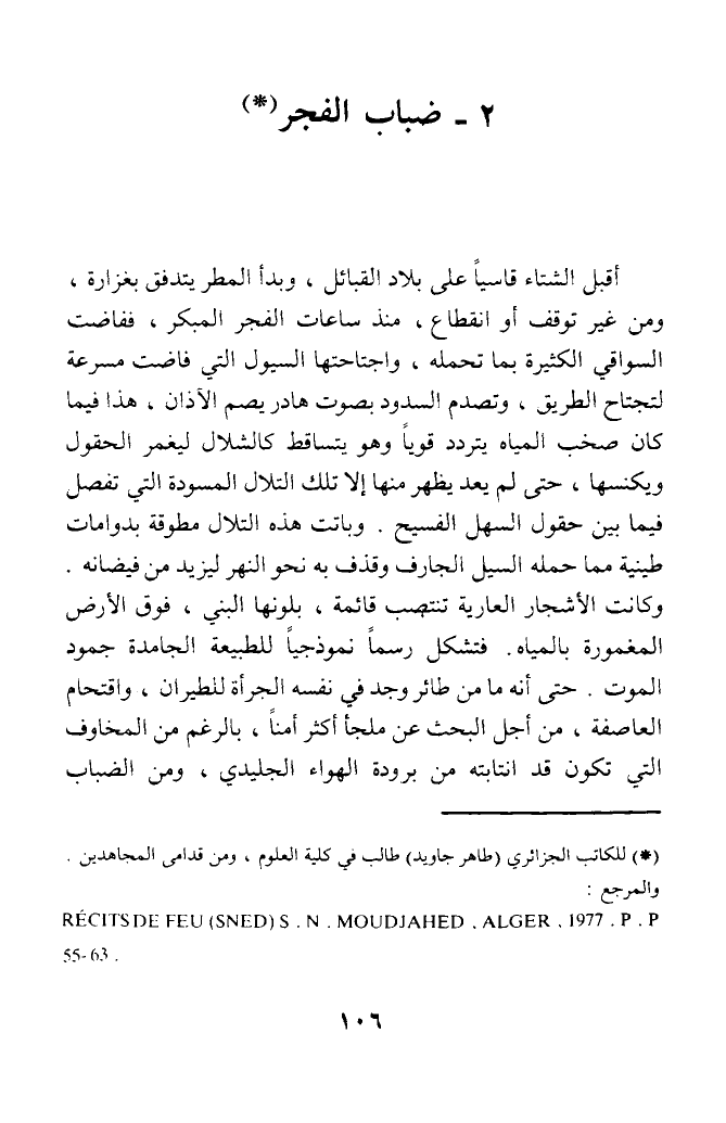 (*) للكاتب الجزائري (طاهر جاويد) طالب في كلية العلوم، ومن قدامى المجاهدين. والمرجع RECITS DE FEU (SNED) S.N. MOUDJAHED . ALGER , 1977 .P . P 55 - 63