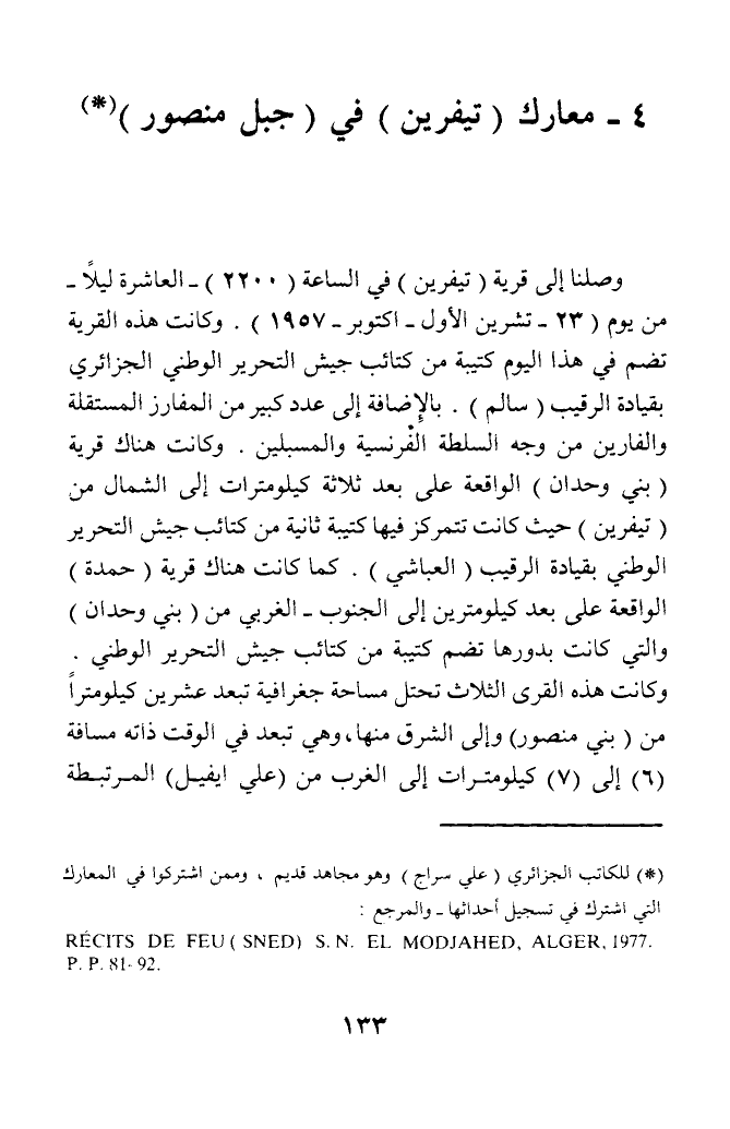 (*) للكاتب الجزائري (علي سراج) وهو مجاهد قديم، وممن اشتركوا في المعارك التي اشترك في تسجيل أحداثها - والمرجع: