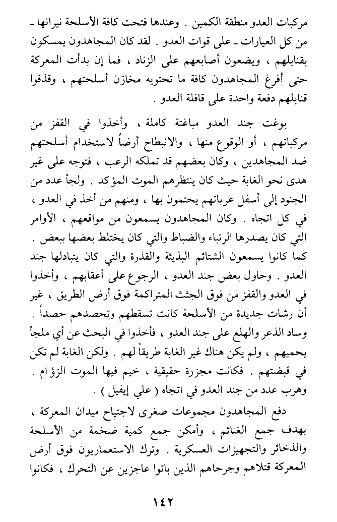 مركبات العدو منطقة الكمين. وعندها فتحت كافة الأسلحة نيرانها - من كل العيارات - على قوات العدو. لقد كان المجاهدون يمسكون بقنابلهم، ويضعون أصابعهم على الزناد، فما إن بدأت المعركة حتى أفرغ المجاهدون كافة ما تحتويه مخازن أسلحتهم، وقذفوا قنابلهم دفعة واحدة على قافلة العدو.