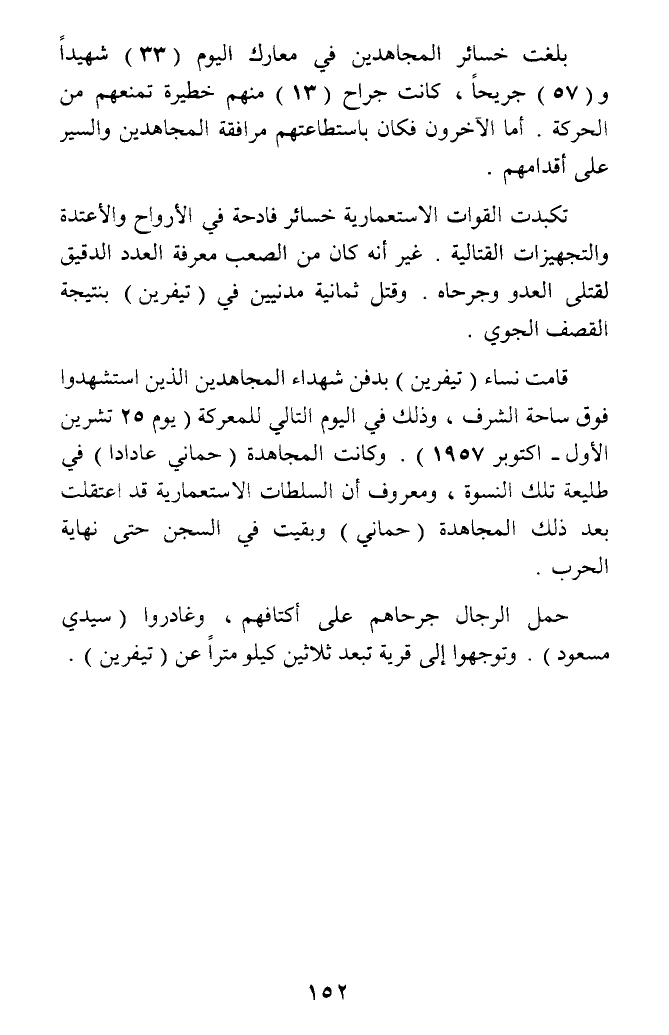تكبدت القوات الاستعمارية خسائر فادحة في الأرواح والأعتدة والتجهيزات القتالية. غير أنه كان من الصعب معرفة العدد الدقيق لقتلى العدو وجرحاه. وقتل ثمانية مدنيين في (تيفرين) بنتيجة القصف الجوي.